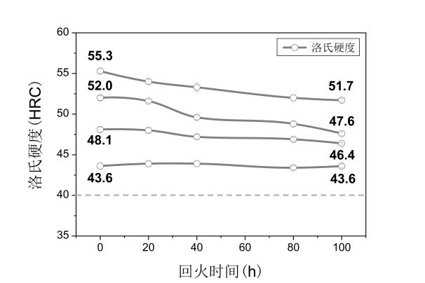| 洛氏硬度(HRC) | 55.3 | 52.0 | 48.1 | 43.6 | |